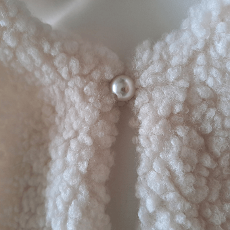 Zacht ecru bouclé meisjesgilet met parelknoop