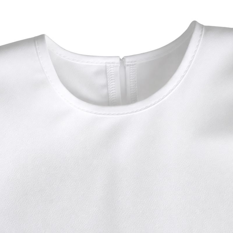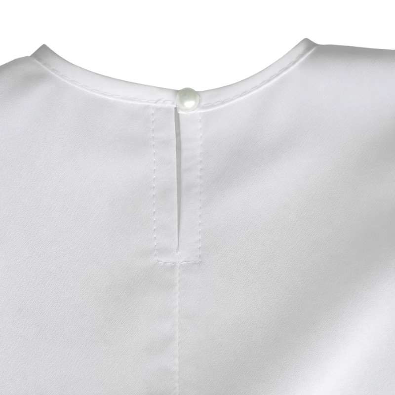 Deze off white meisjes blouse van crêpe stof is een elegante en tijdloze keuze voor bijzondere momenten. Speciaal ontworpen voor de feestcollectie van Boetiek Uniek, is deze blouse perfect voor kinderen die als daggast een bruiloft bijwonen. De blouse combineert een feestelijke uitstraling met het comfort dat kinderen nodig hebben om zich de hele dag vrij te kunnen bewegen.