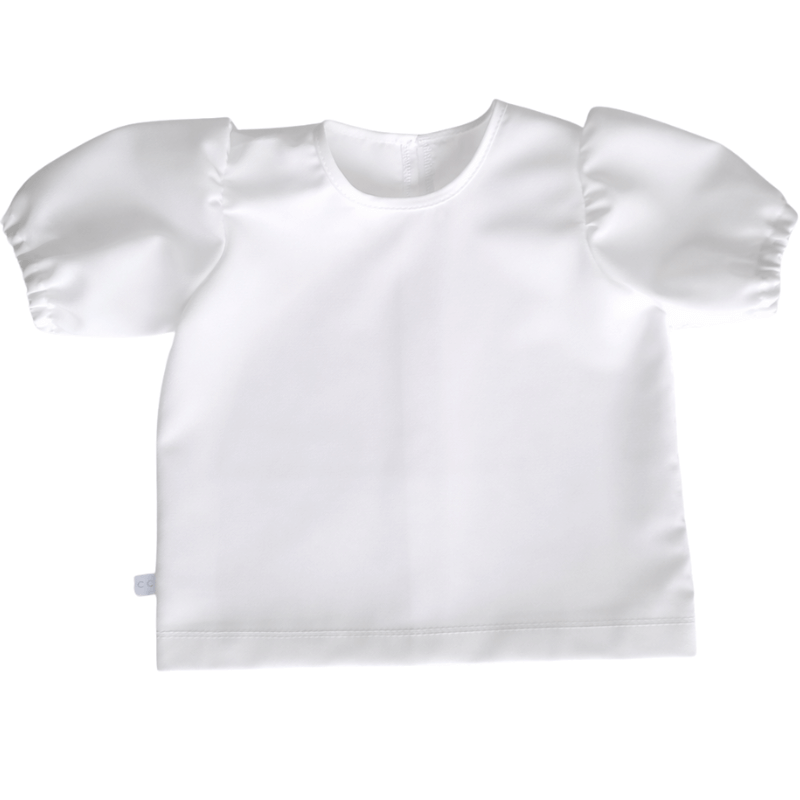 Deze off white meisjes blouse van crêpe stof met pofmouw is een stijlvolle keuze voor feestelijke gelegenheden. De blouse heeft een ronde halslijn, een subtiel parel knoopje op de rug en speelse pofmouwtjes met elastiek onderaan. Perfect te combineren binnen de feestcollectie voor kinderen die als dag gast een bruiloft bijwonen. Verkrijgbaar in maat 80 t/m 134.
