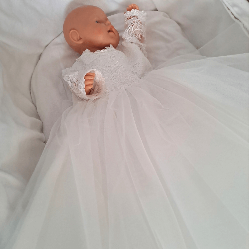 Of je nu gaat voor een klassieke kerkelijke doop of een intieme ceremonie thuis, deze jurk maakt het moment nog specialer.