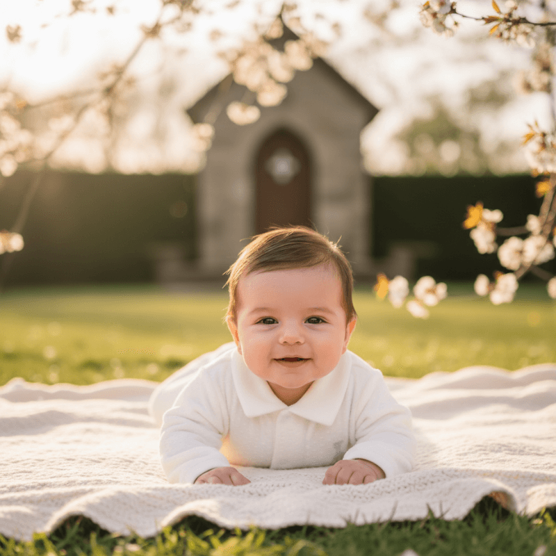 Door het werkje in de stof (jacquard) is het een extra luxe pakje. Dit boxpakje van velours. In een mooie verpakking is dit een mooi cadeau om te geven op een kraamfeest.
