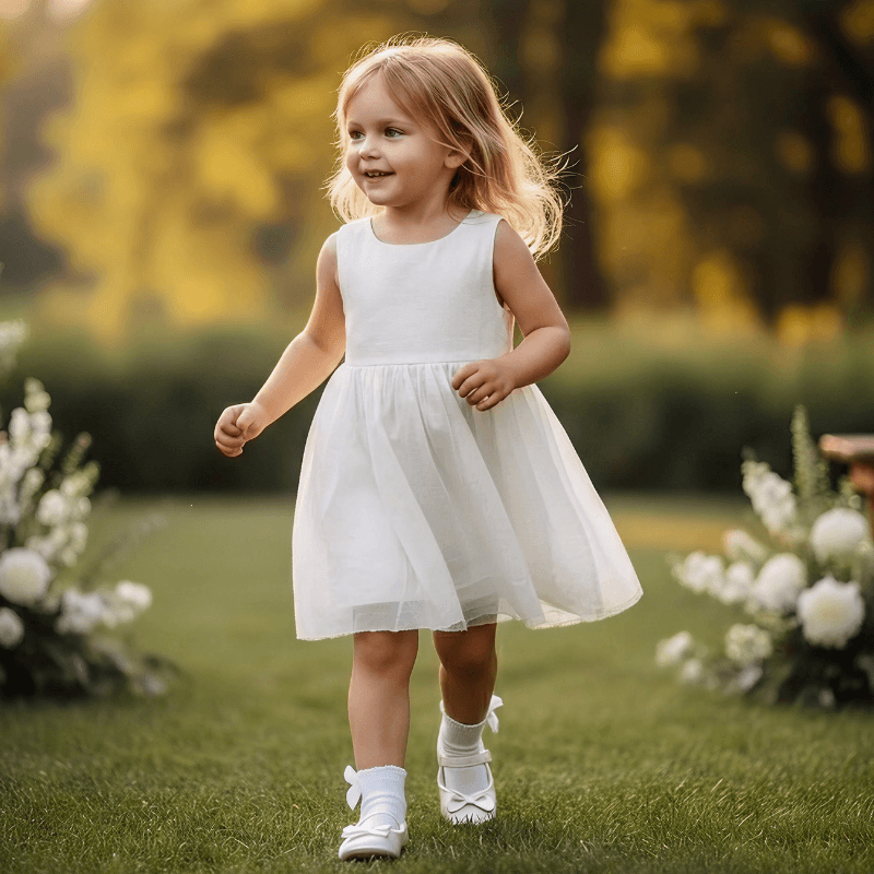 Deze witte sokken met strik voor meisjes zijn de perfecte finishing touch voor elke feestelijke outfit. Gemaakt van 100% katoen voelen ze heerlijk zacht aan en bieden ze optimaal comfort, de hele dag door. De elegante strik geeft een lieve, stijlvolle uitstraling die prachtig past bij bruidsmeisjes jurken, communiekleding en feestelijke outfits voor daggasten.